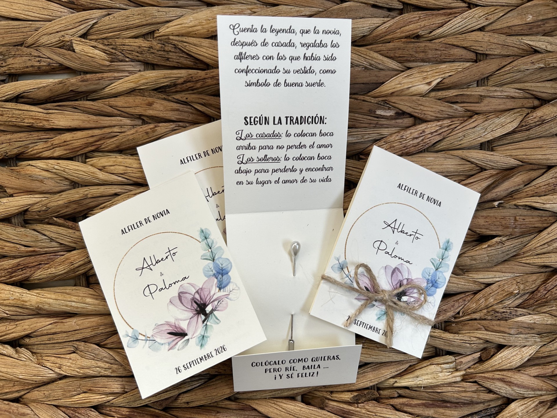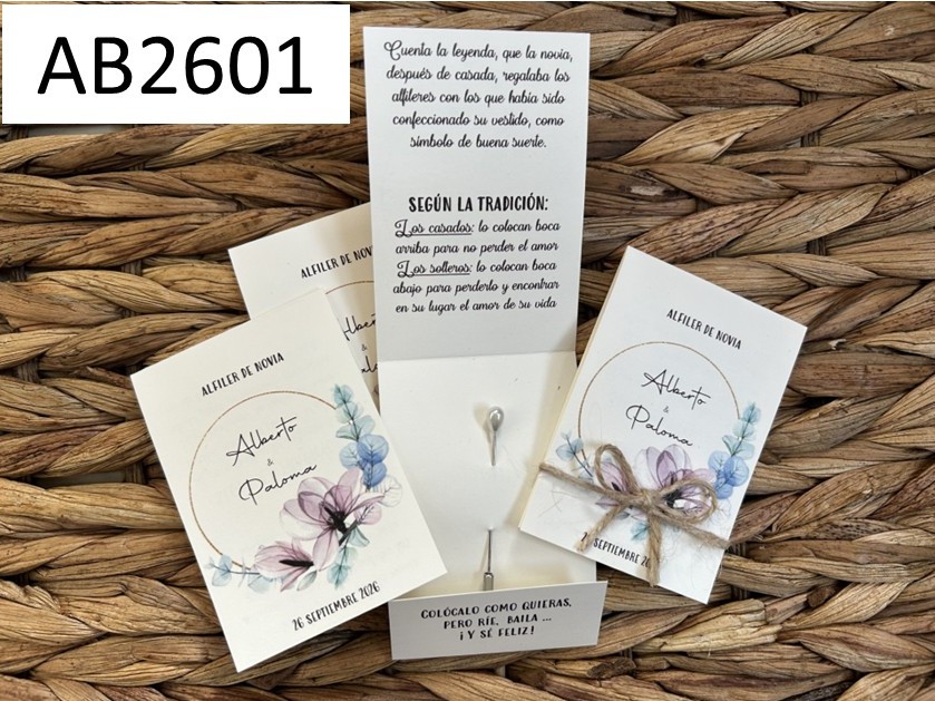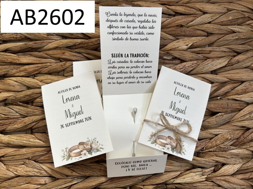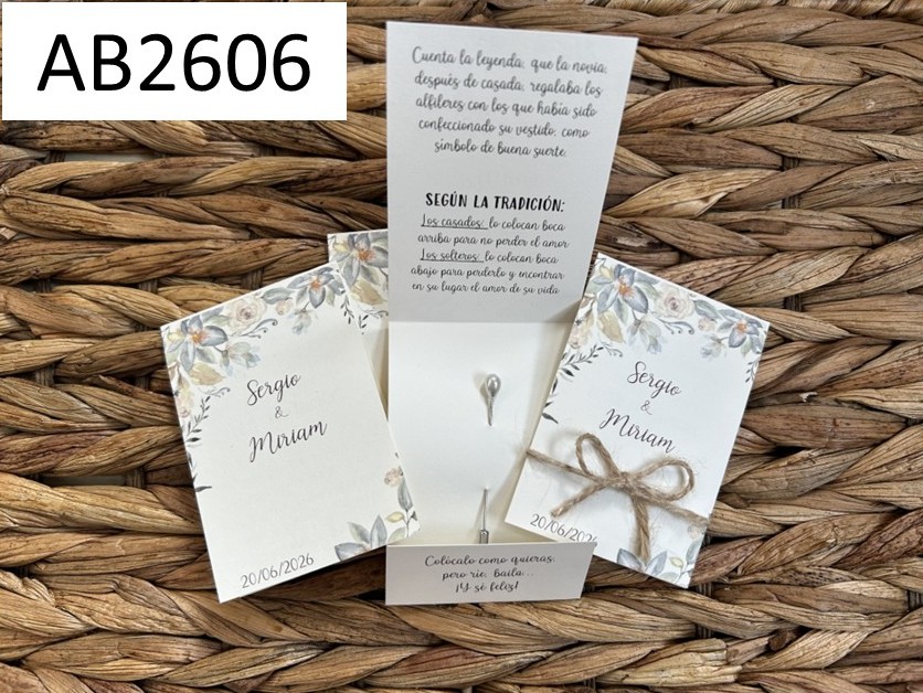 Nunca había visto algo así, un detalle perfecto con su alfiler y todo y su leyenda.. estoy segurísima que le van a encantar a mis invitadas. Mi pedido llegó perfecto, acorde lo hablado con Teresa que es una maravilla de persona y gracias a ella mi ilusión va creciendo porque cada cosa que hace más me gusta. Recomendable para todas aquellas parejas que se casen.